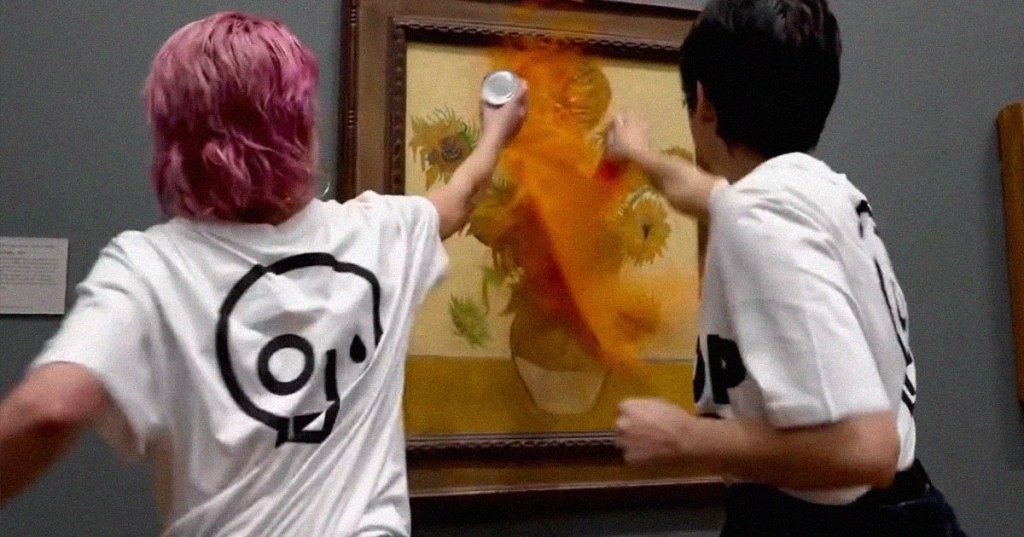 ‘Natuurlijk weten ze dat de werken goed zijn beschermd, en dat de overwegende reactie verontwaardiging zal zijn. Dat zijn geen toevalligheden, het past bij de geweldloze ontregeling die burgerlijke ongehoorzaamheid typeert. De kunst is hier dus geen mikpunt, maar een medium dat de activisten in staat stelt om een indringende vraag te stellen aan een mondiaal publiek.’