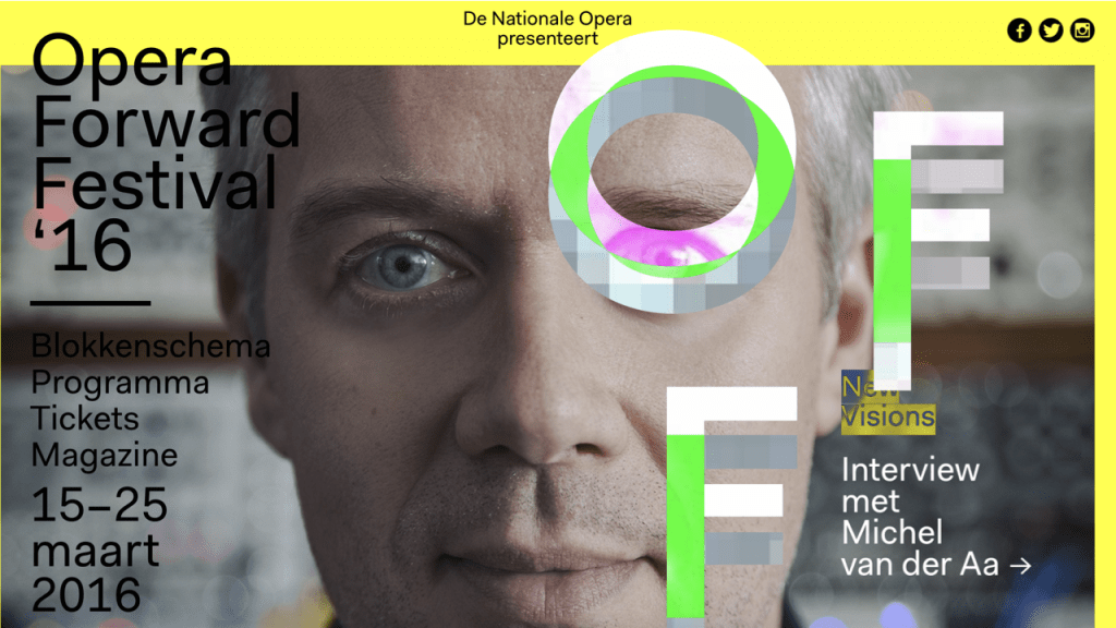 Opera Forward Festival was launched during the 50-year anniversary of De Nationale Opera. The festival explores the future of opera through the prism of the arts and society. I developed the brand- and campaign strategy, creative direction, website and programme.